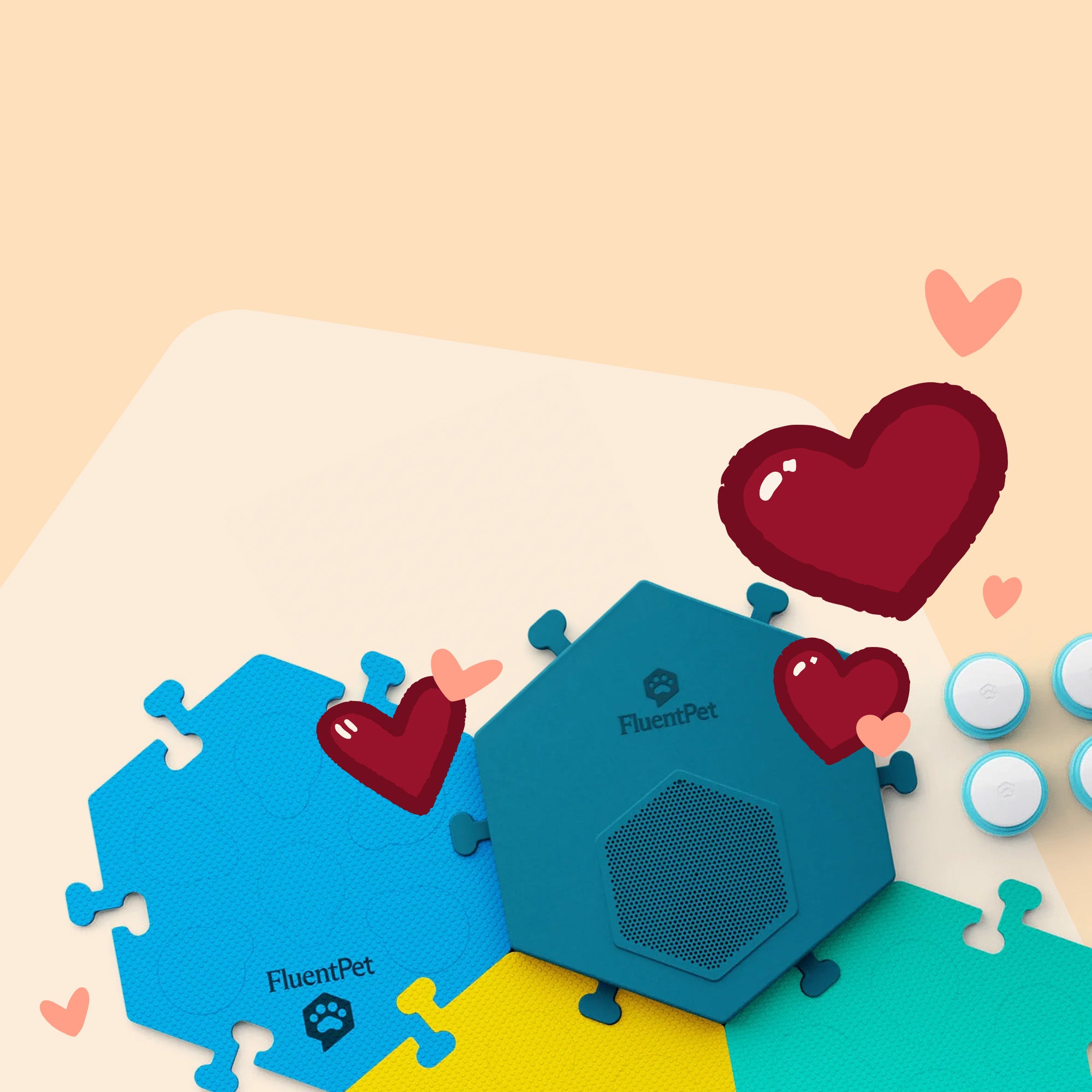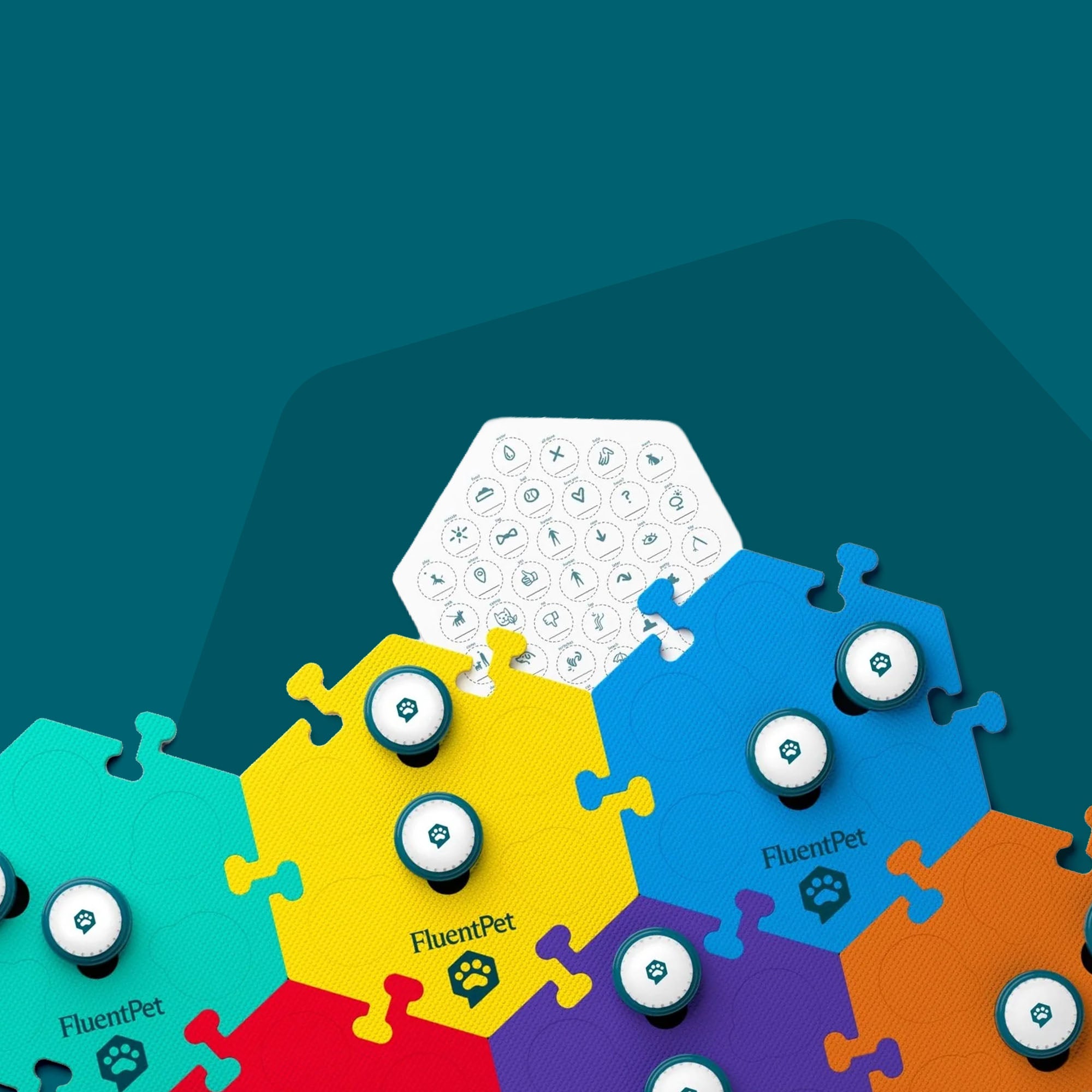 FluentPet's Get Started Kit (available in Speak Up! and Connect) is our best seller with 6 buttons and 3 HexTiles. Provides a great start with plenty of room to expand.