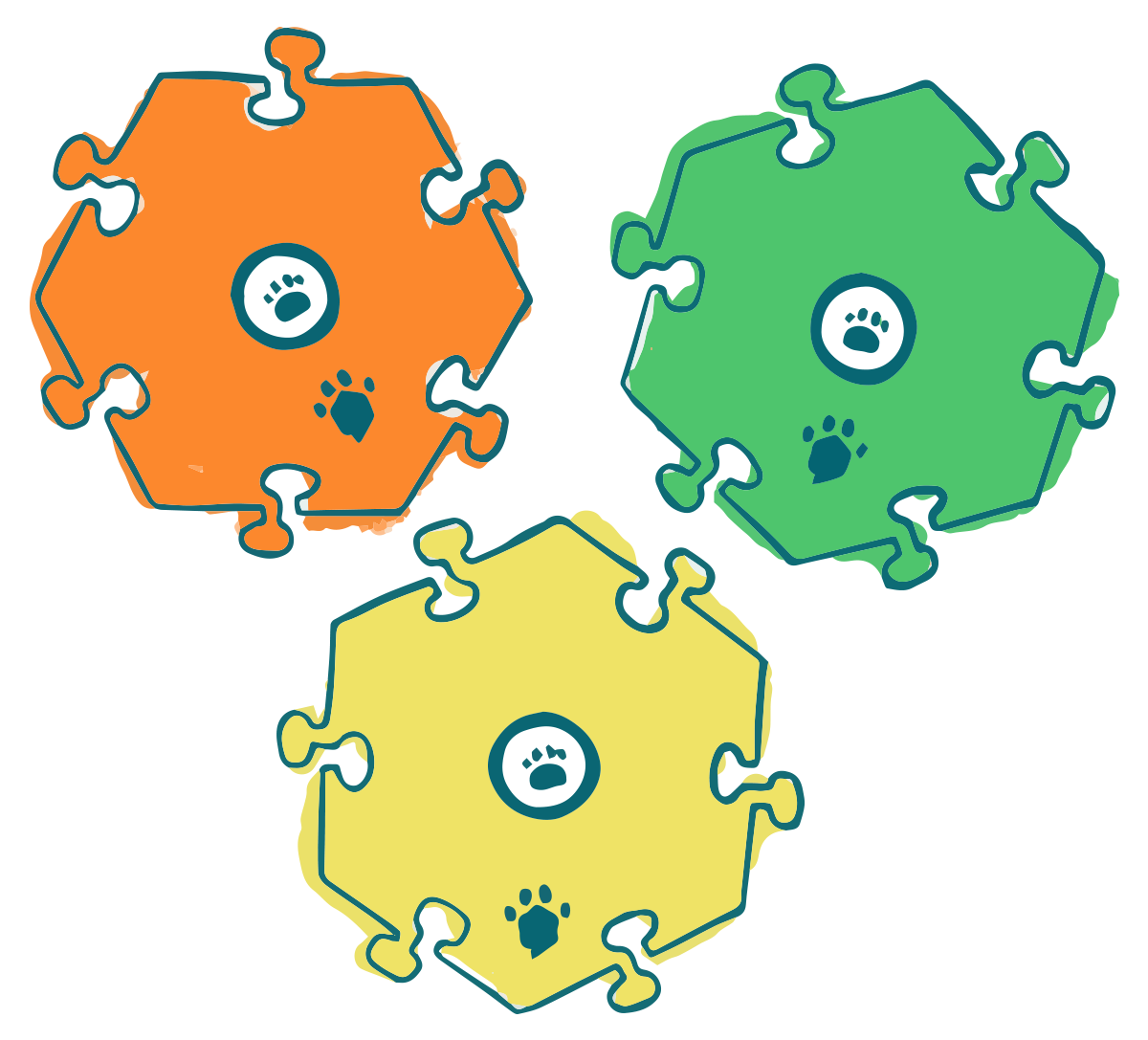 With six FluentPet Basic Buttons (Gen 1) and three HexTiles, this kit lets you create a soundboard and gives you everything you need to start teaching your learner key words like “potty”, “water”, “play”, and “outside”.